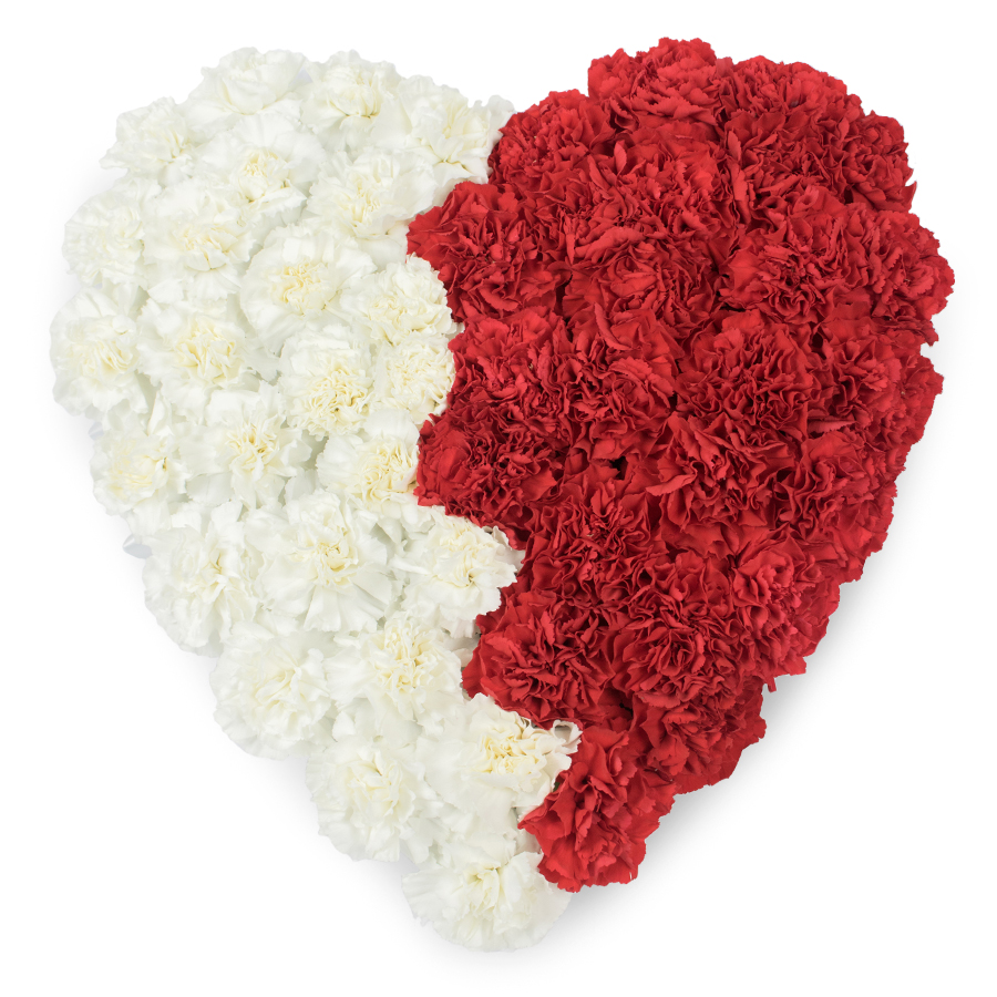 Express your deepest emotions with our Lovely Heart-Shaped Carnations Bouquet. This exquisite arrangement features a captivating mix of white and red carnations, artfully arranged into a heart shape that symbolizes love and care.